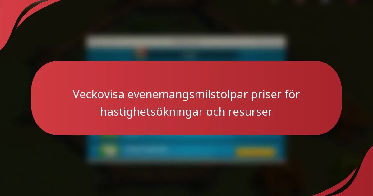 Eventmilestones är viktiga belöningar som spelare kan tjäna genom att uppnå specifika mål under evenemang i spelet. Dessa belöningar inkluderar vanligtvis värdefulla hastighetsförbättringar och resurser som avsevärt förbättrar spelupplevelsen, vilket möjliggör snabbare uppgraderingar och framsteg. Genom att delta i milestones-evenemang kan spelare få tillgång till en mängd belöningar som bidrar till en mer effektiv och konkurrenskraftig spelupplevelse.